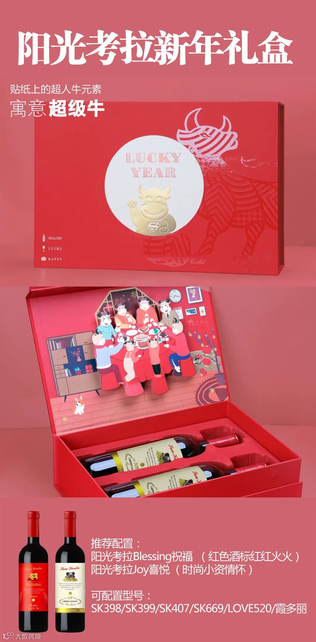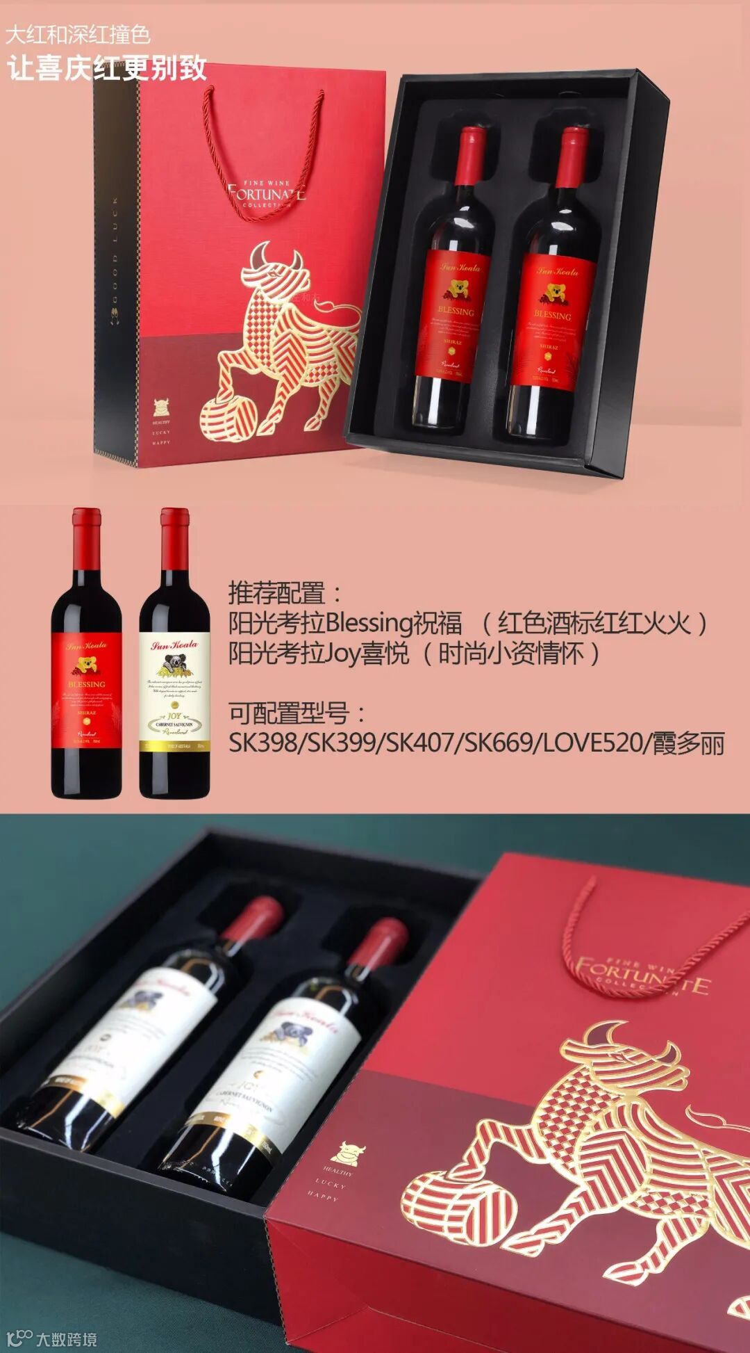 单层6支装木箱可以搭配阳光考拉祝福blessing,喜悦joy,SK398,SK399,SK407,SK669,Love520,霞多丽,原木木箱,专属LOGO,钉箱封装,原汁原味。
