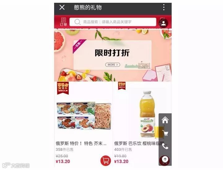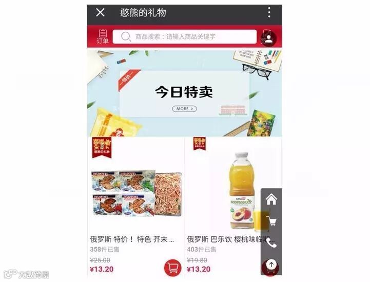 “憨熊的礼物”主要运营进口食品以及地方特色食品。进口食品如:俄罗斯碎杏仁巧克力、芒果糖、马克发面粉等具有代表性的俄罗斯商品以及其他进口食品。