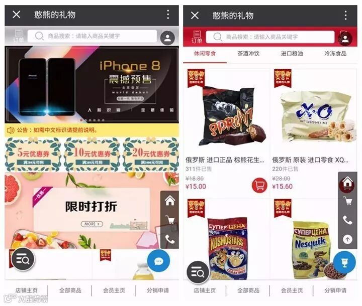 “憨熊的礼物”,鸡冠区政府与鸡西邮政分公司共同建设的大型垂直电子商务平台,通过启博软件旗下微分销系统搭建的进口食品微分销商城,利用分销的形式将产品分享给自己的好友,获得佣金回报。