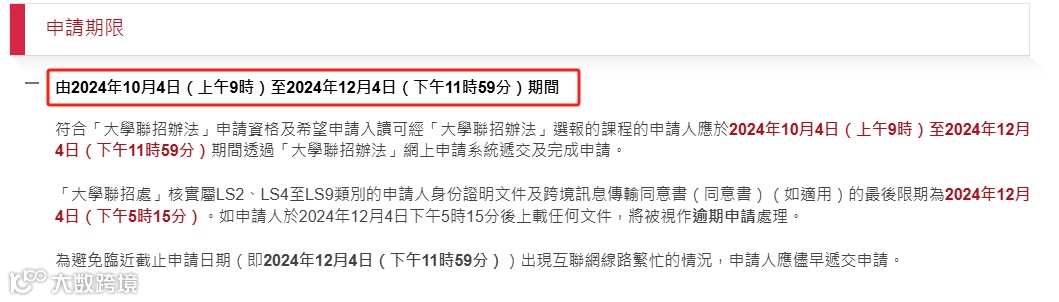 图:2025学年的港校联招JUPAS申请期限