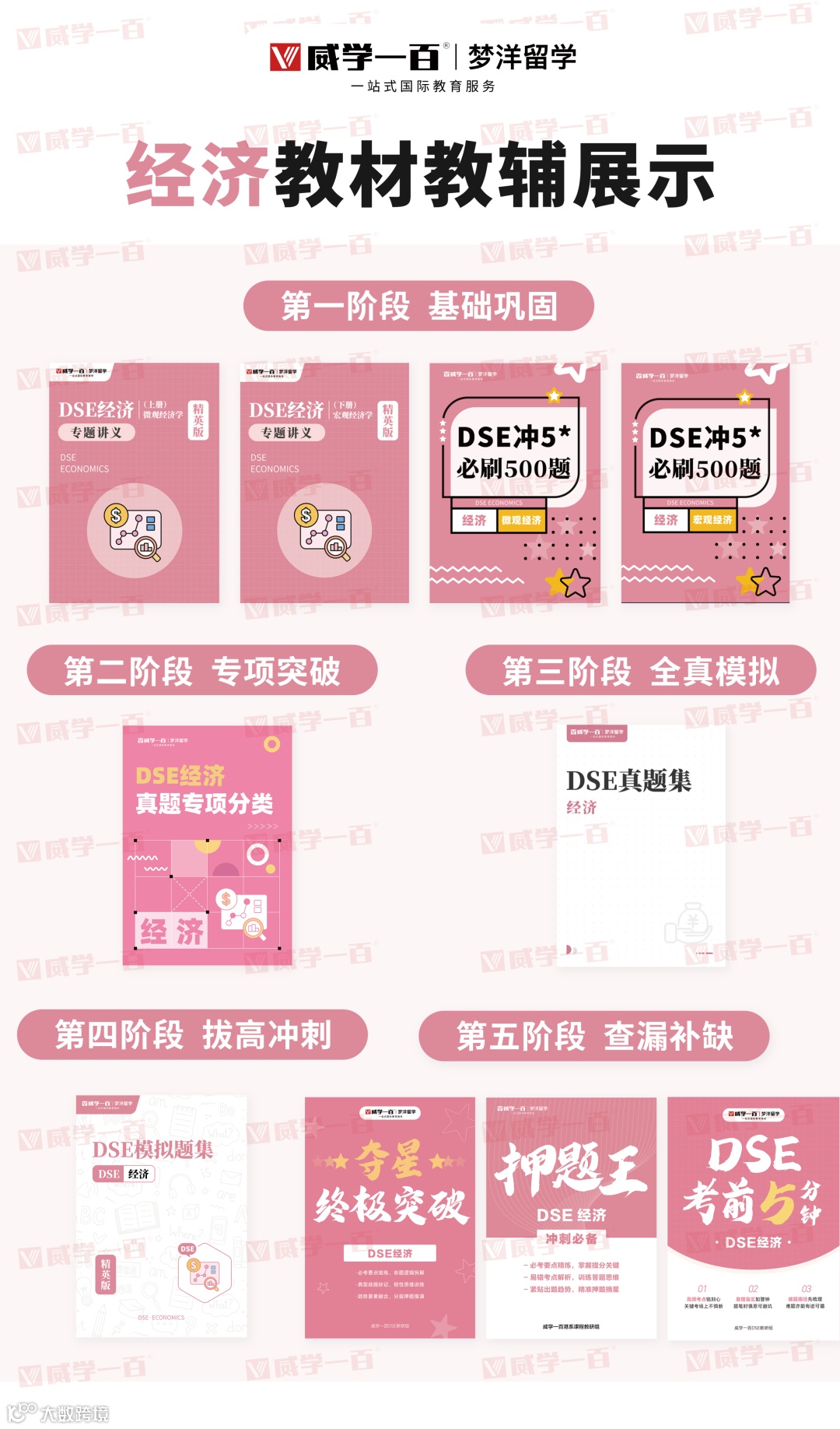 使用《DSE经济专题讲义》,按微观→宏观→微观选修的脉络全面梳理经济核心知识点,分册系统串讲核心概念、原理与模型,以真题为例讲解基础解题技巧,搭建完整知识框架,明确考点及得分点分布规律,规范基础答题表达。此外,学员将通过《DSE经济冲5*必刷500题》分层训练,提升刷题速度和刷题效率。