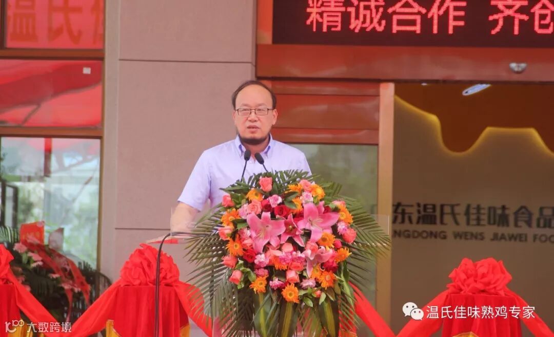 养禽事业部总裁梁志雄首先发表了热情洋溢的欢迎词,并表示今天是庆祝温氏股份创业35周年的日子,同时也迎来了佳味公司新办公楼落成庆典和温氏南农肉制品联合研发中心揭牌仪式。温氏集团秉承“精诚合作,齐创美满生活”企业文化理念,专注做强做大养禽、养猪业务,完善相关配套产业,实现了企业稳健、持续发展,取得了可喜业绩,现已成为全国现代农牧标杆企业。面对新时期国家政策、企业发展以及消费需求变化,温氏股份明确提出转型升级发展战略,实施从养殖企业向食品企业转型,全面开启初加工、深加工业务,延伸产业链条,满足新时期食品消费需求,为企业未来争取更大发展空间。佳味公司是集团开启食品深加工业务探索之路的先行者,目前已通过校企合作,初步搭建起产品研发队伍,开展了多种营销渠道业务探索,并获得了初步成果。目前,佳味公司日均销量3万只,出口日均超过1万只,占港澳市场30%以上份额,为食品深加工业务奠定了发展基础。
