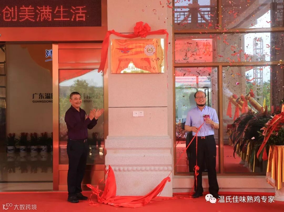 最后由温鹏程董事长和周光宏校长对温氏股份-南京农业大学肉制品联合研发中心进行揭牌。仪式后,嘉宾们汇集到佳味新办公楼大堂品尝佳味公司推出的新产品。宾客们对所有新品都进行了品尝,并一致表示,温氏佳味鸡肉美食肉质鲜美,饱满多汁,香嫩美味。