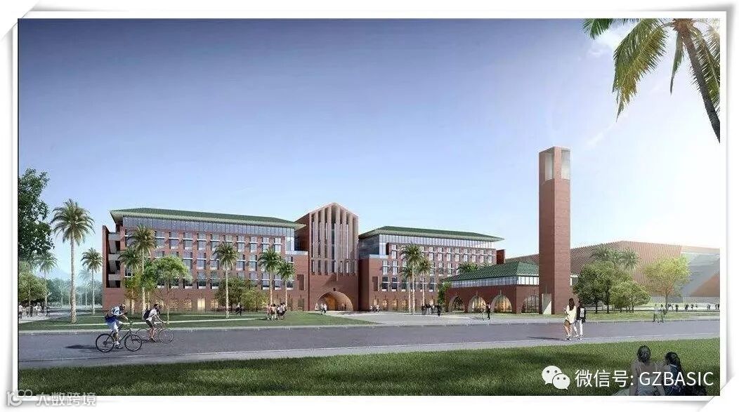 项目概况: 华南理工大学广州国际校区选址广州番禺区,与广州大学城隔岸相望,总用地1650亩,建筑面积60多万平方米,项目总投入预计超100亿元,主要包括教学、科研、行政管理、图书馆、体育运动、生活区等。该校区重点发展新材料、人工智能、生物医药、生命健康、绿色建筑与智慧城市、生态环境等方向。