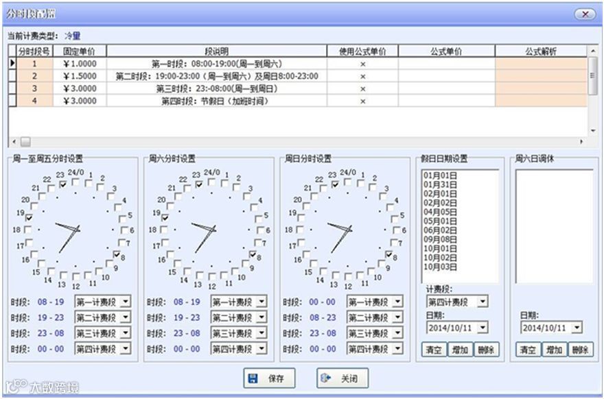 答:中央空调计费系统根据不同建筑业态,适应其运营模式,引入分时间段独立计量和计费方式。例如,每天可以分4个封闭时段(上班、加班1、加班2、加班3),周六、周日也可以分为4个封闭时段,及国家规定的节假日特别时段。