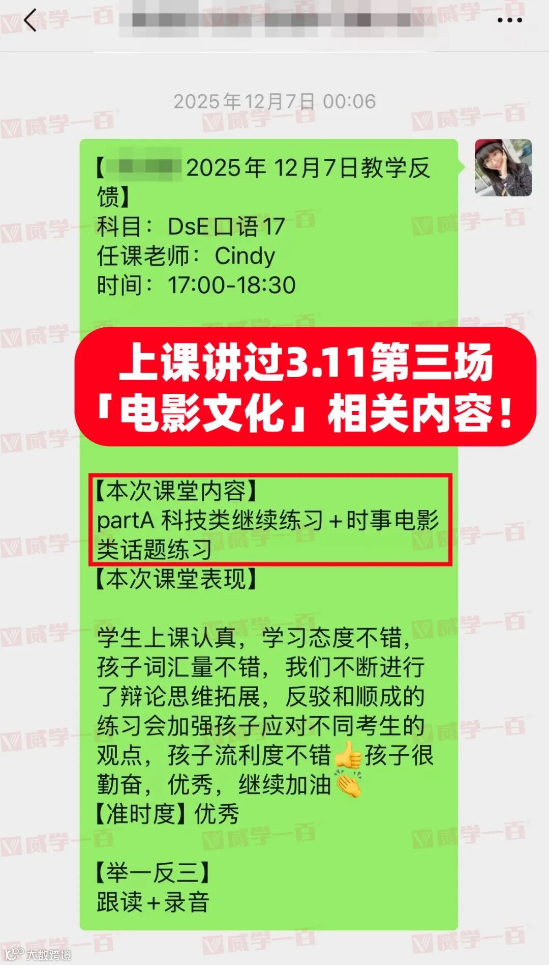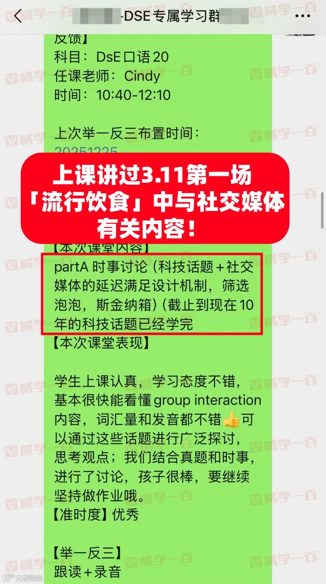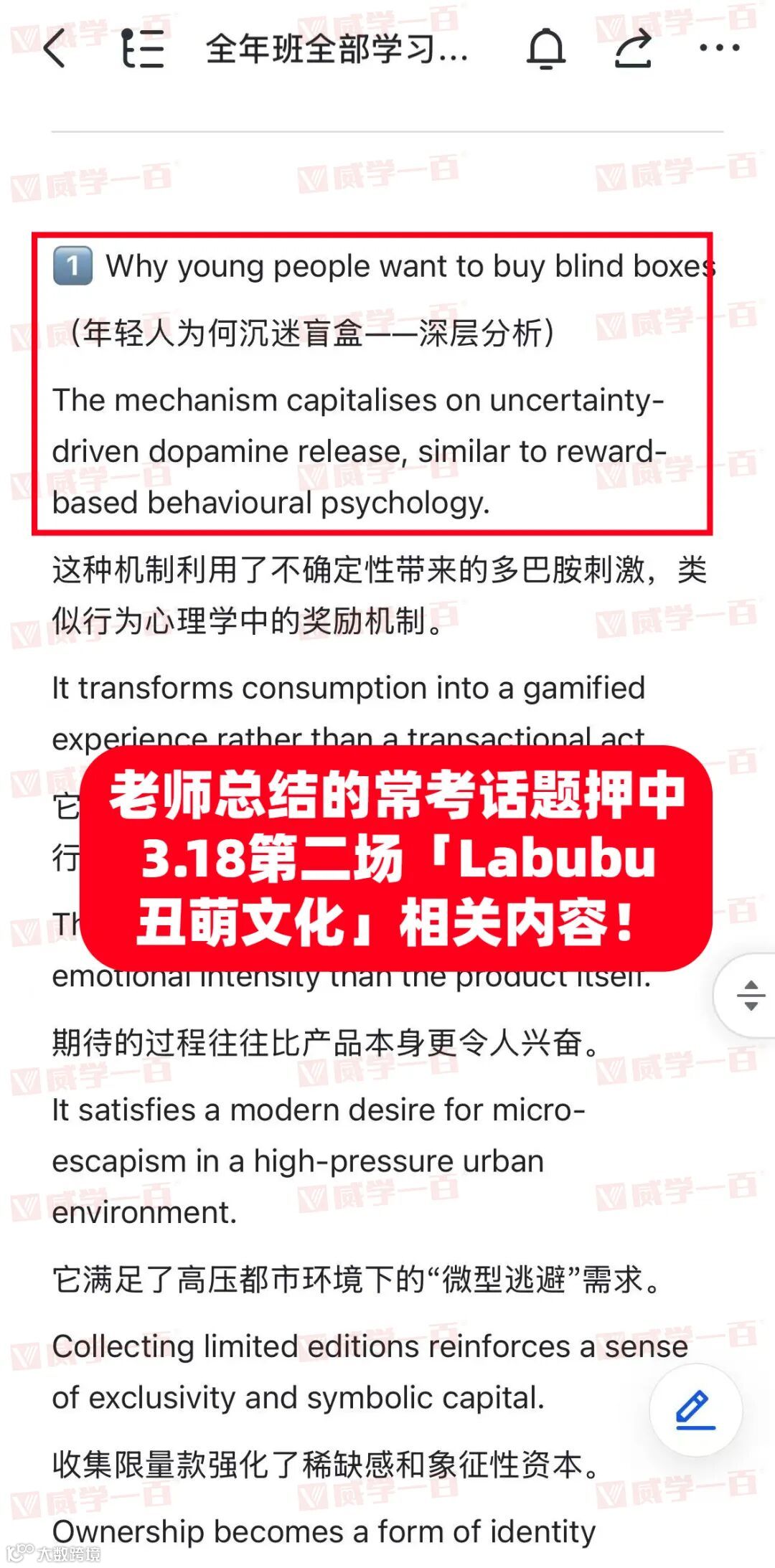 这些学员的反馈背后,离不开威学一百教研团队深耕DSE考情、精准把控出题趋势的硬核实力,更离不开我们全方位的备考赋能:不仅有《DSE月刊》精准命中考点(点击回顾:绝了!26年DSE口语考试,威学《DSE月刊》命中14场!),更有专为DSE口语冲刺打造的DSE口语考前预测题和《DSE口语语料》两大硬核备考利器。