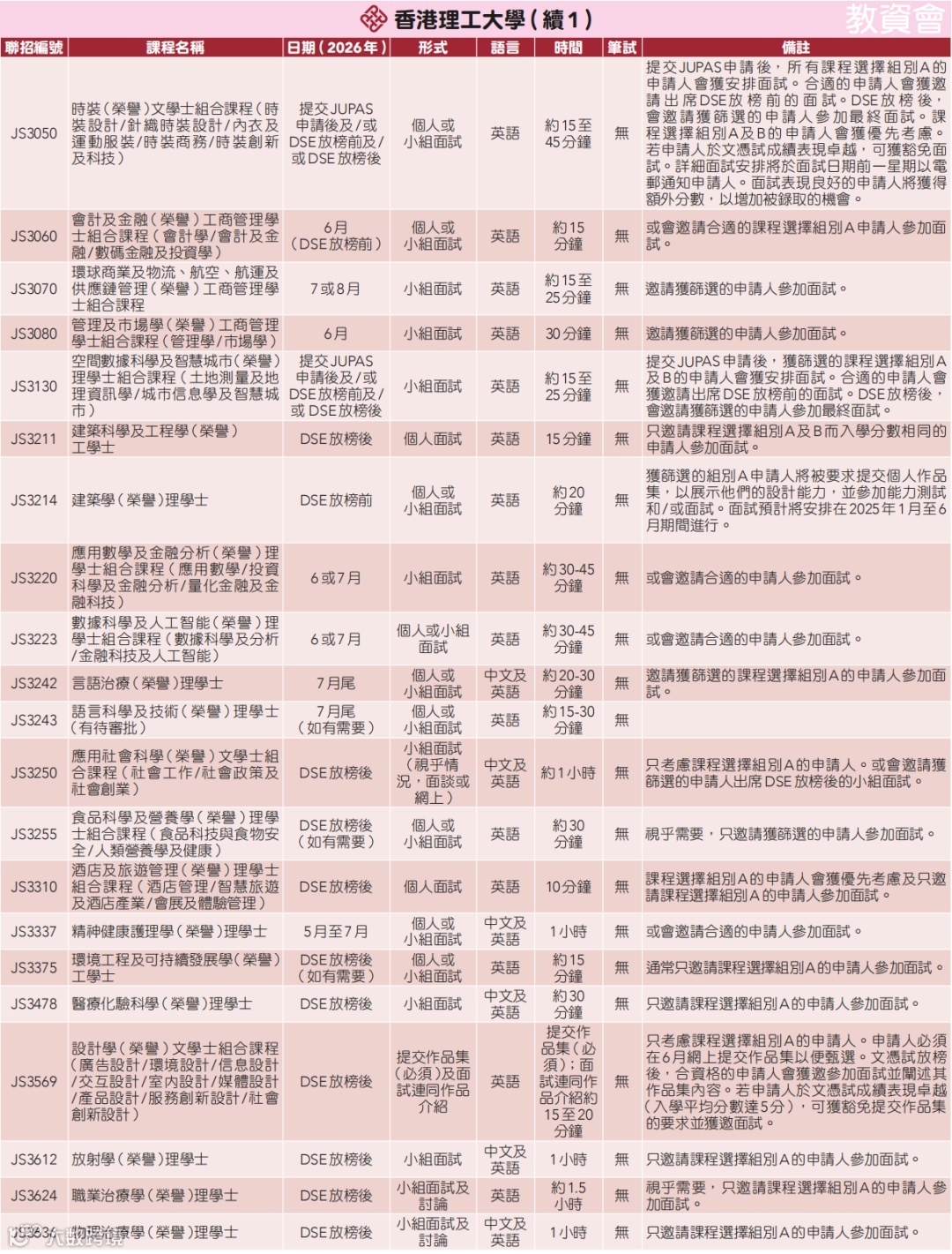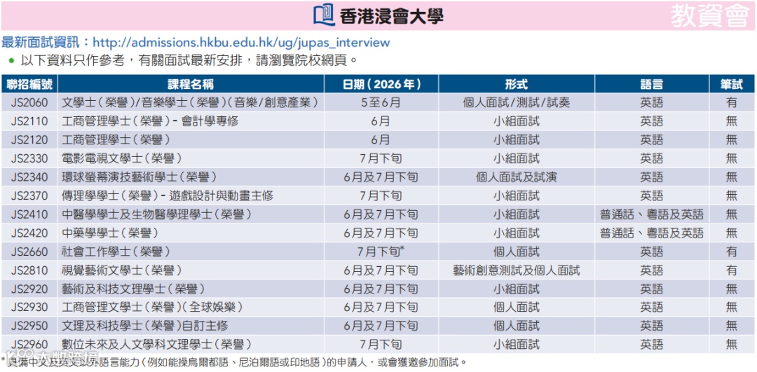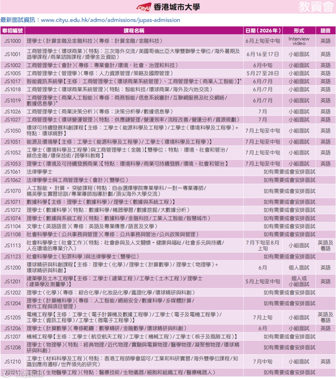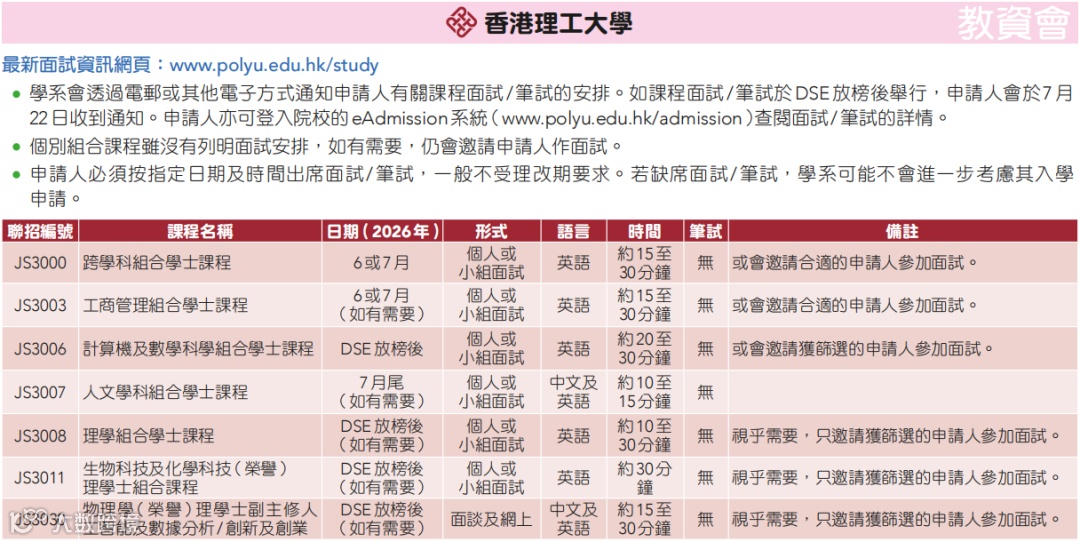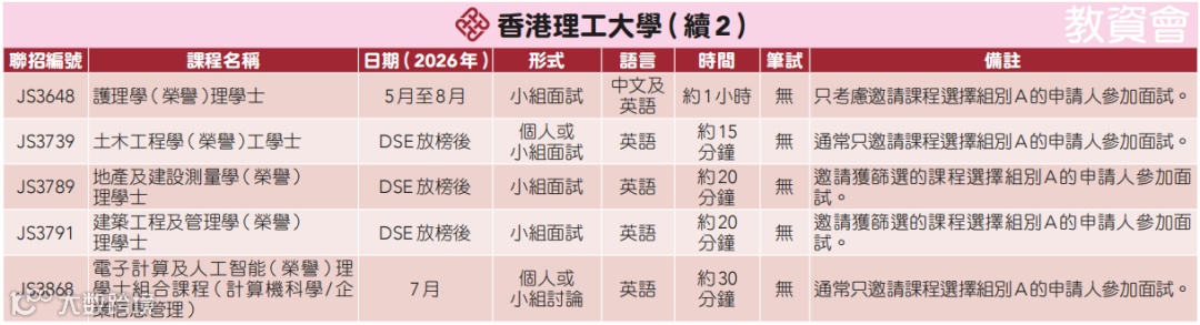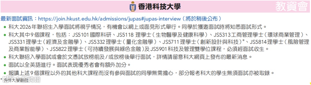 港八大需面试的课程