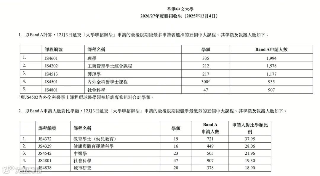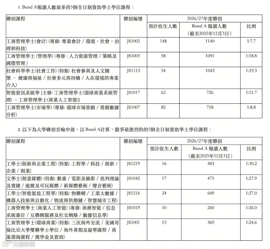 2026/27年度大学联招办法(JUPAS)首轮申请已截止,香港八大院校也已公布JUPAS首轮申请核心数据。