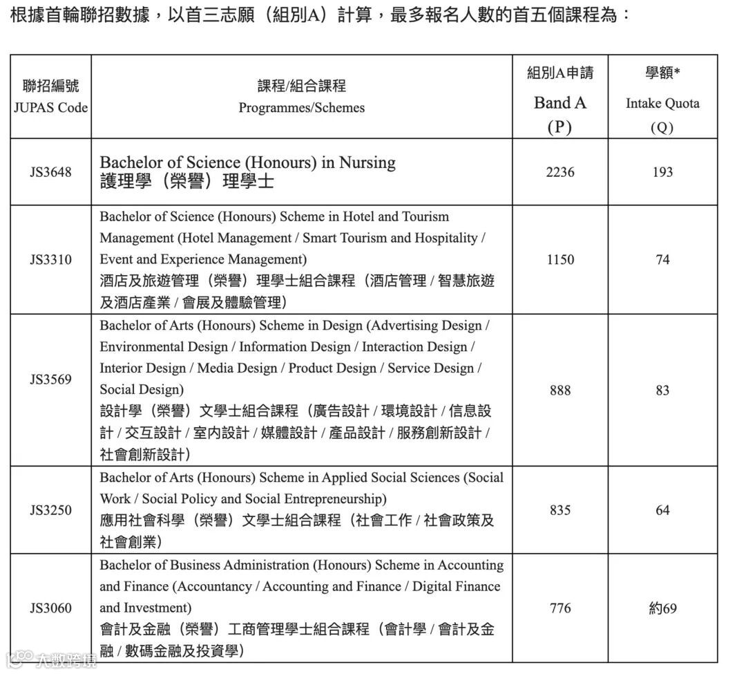 护理学成为最热门课程,有2,236人报读;工商管理组合学士课程竞争最激烈,714人竞争17个学额,平均约42人争一学额。