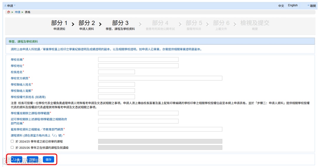 步骤4:填写学历、课程及学校资料