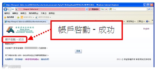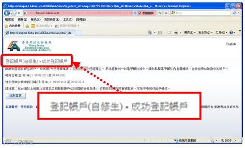 步骤4:如成功建立帐户,系统会立即显示【登记帐户(自修生)-成功登记帐户】页面。