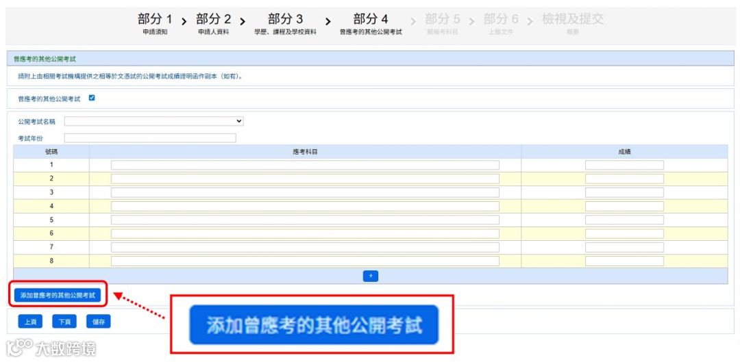 如无可略过;若曾参加过等同DSE的其他考试,则填写相关资料,可多次添加考试信息。