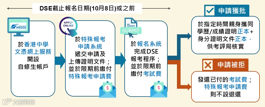 所有特殊报考的申请人,不论收到审批结果与否,都必须在文凭试截止报名日期或之前,经香港中学文凭考试网上服务的报名系统完成报名。