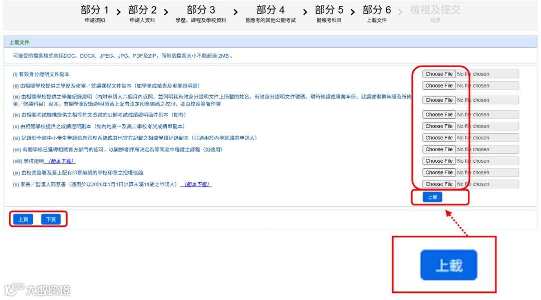 可接受的档案格式包括DOC、DOCX、JPEG、JPG、PDF及ZIP,每个文件不超过2MB。
