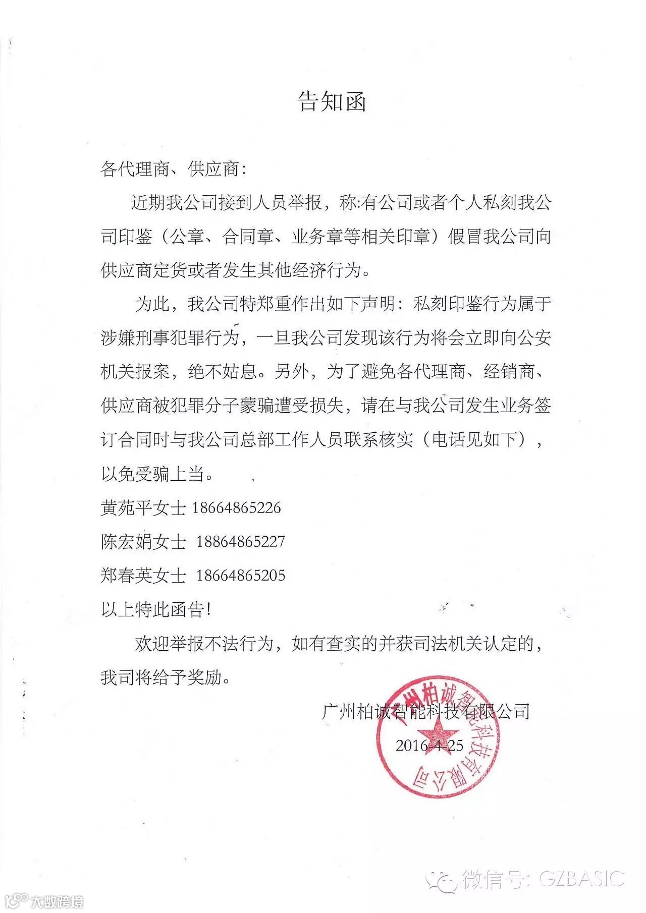 导读:各代应商、供应商:近期我公司接到人员举报,称:有公司或者个人私刻我司印鉴(公章、合同章、业务章等相关印章)假冒我司向供应商定货或者发生其他经济行为。