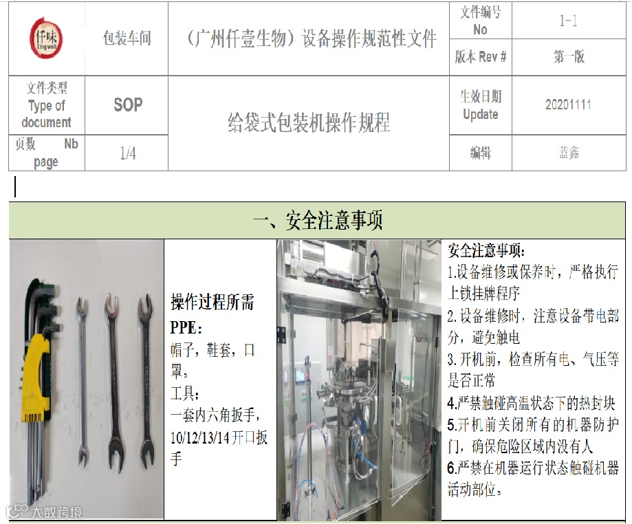 在整个2021年,我们基本完成了一整套的包括各个工序的标准作业流程,以及设备操作规程SOP。
