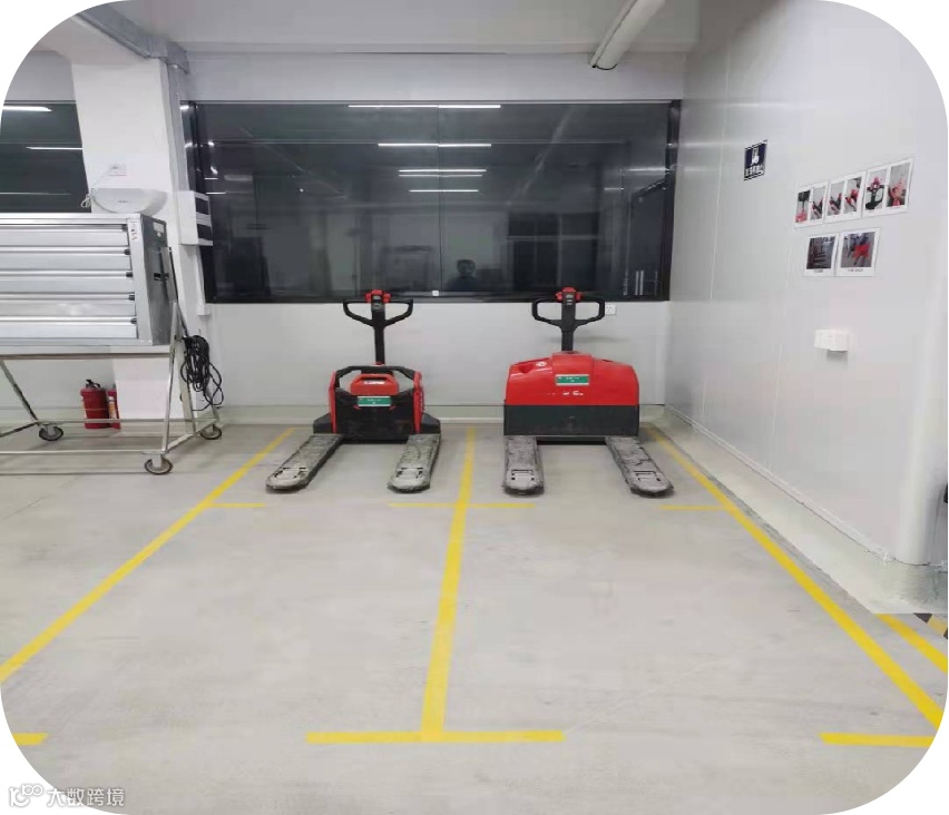 在作业现场,我们实施6s管理,对所有场地进行规范划线,设备定位、物品定位等。