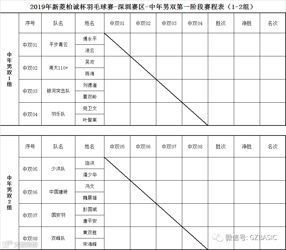 3、中双、混双初赛的各小组前二名进入复赛;青双初赛的各组第一名进入复赛,净胜分最多的前2名进入复赛。