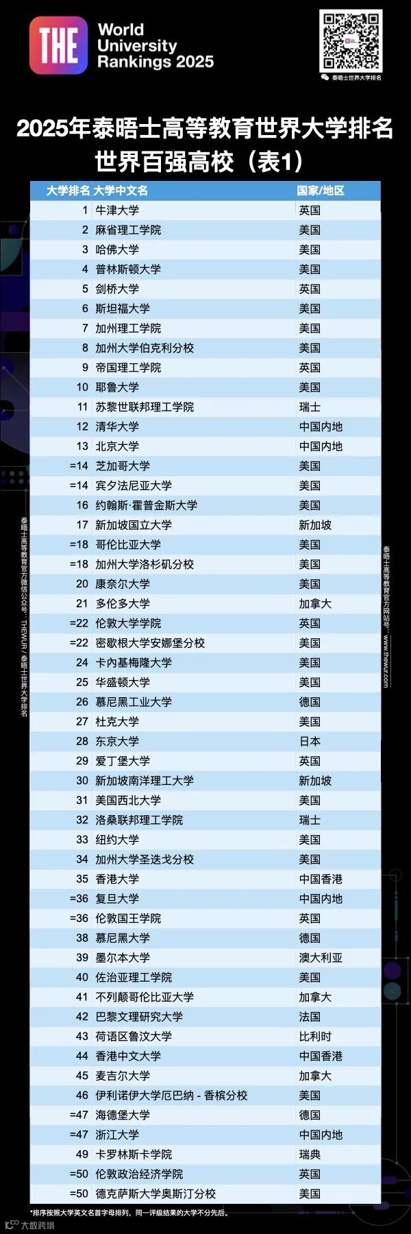 千呼万唤始出来,又一重磅榜单新鲜出炉!2025年泰晤士高等教育世界大学排名于10月9日正式发布!