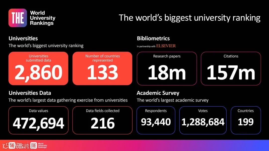 2025年版世界大学排名以深入而丰富的数据为基础,包括对1800万篇研究论文的1.57亿多条引用的分析以及对全球93,000多名学者的调查。