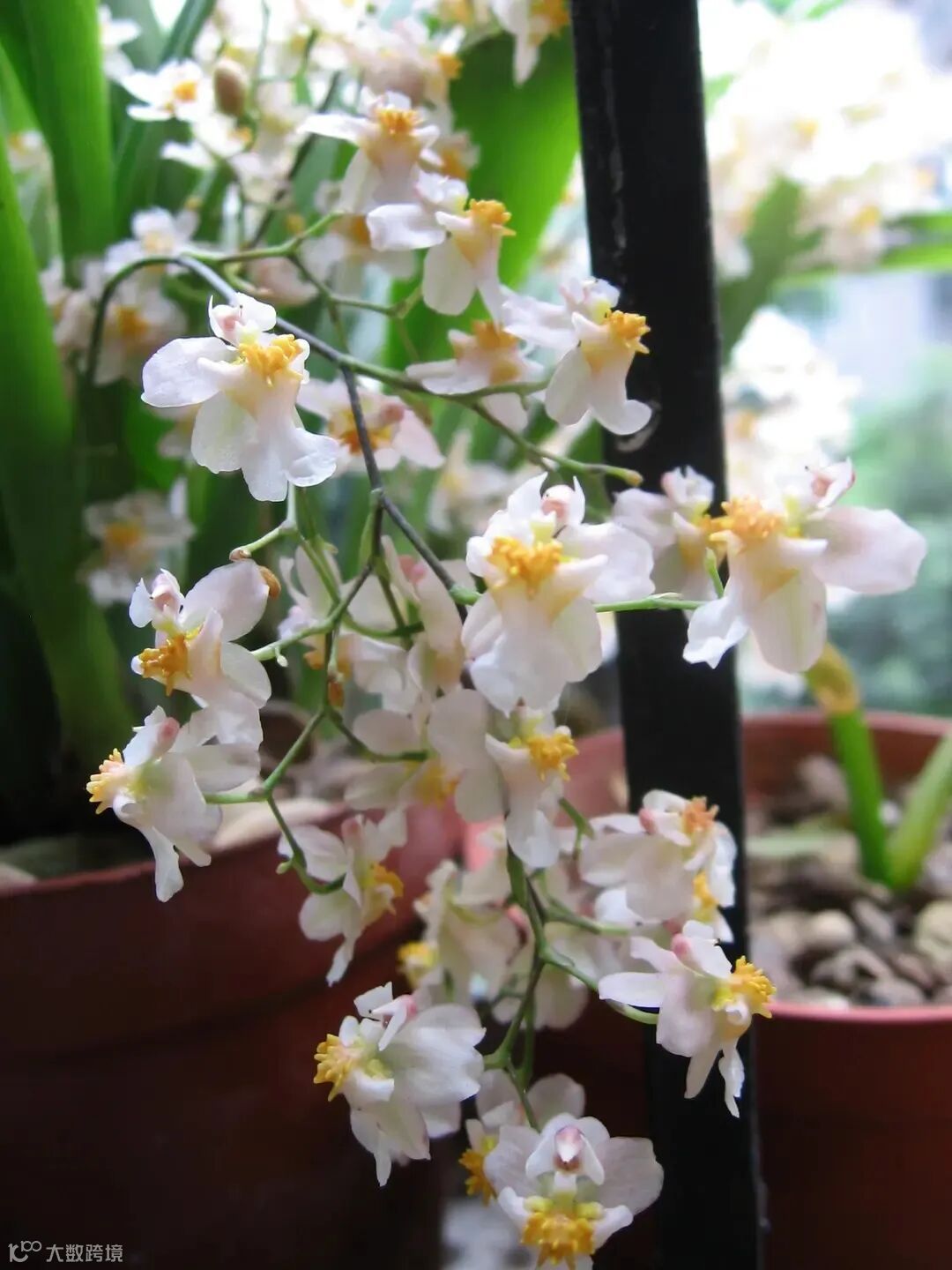 如果在花市购买文心兰,首先看看文心兰的根系是不是健壮的,根系是那种大白根而且比较粗壮的更好。可以选择分枝多、香气好、花苞多的品种,还需要注意购买的季节,冬季最好选择接近满开状的盆花,其他季节可选择花蕾多的。