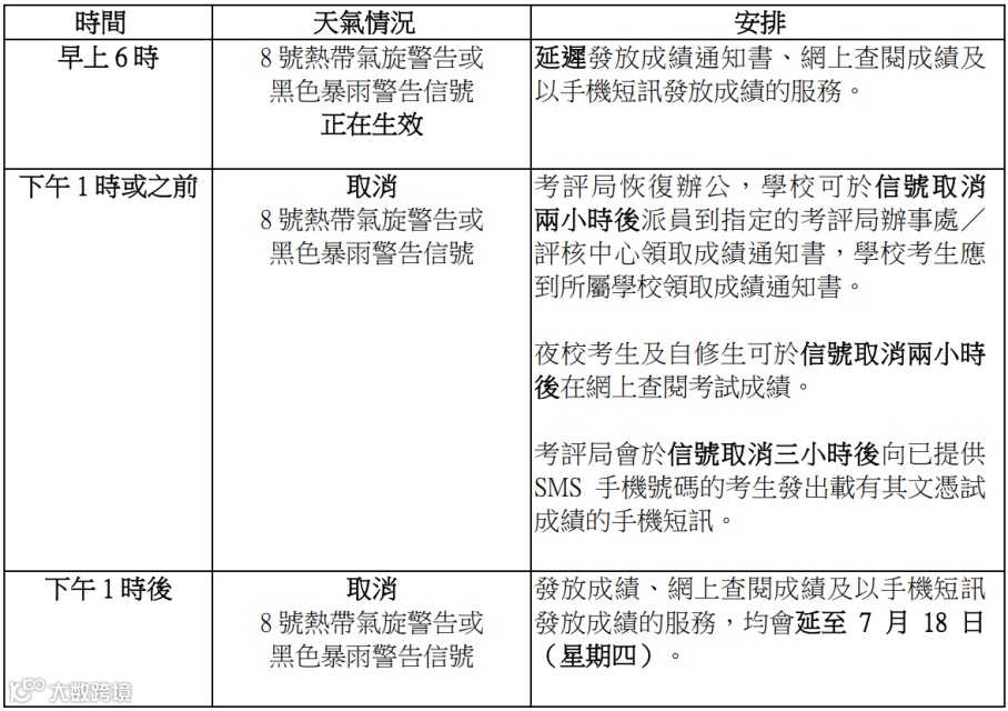 除了成绩通知书,考评局亦会以手机短讯(SMS)发放成绩。7月17日上午9时起,考评局会向已提供SMS手机号码的考生发出载有其文凭试成绩的手机短讯,有关短讯将会以「#HKEAA」的短讯发送人名称发放。