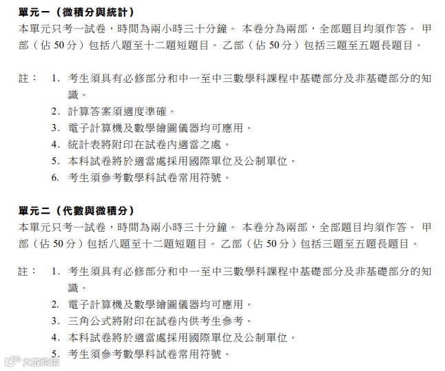 DSE 数学延伸有M1「微积分与统计」和M2「代数与微积分」两个单元,学生可根据个人情况选择报考其中一个单元。