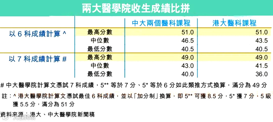 图:2023年港大和港中大(中大)医学收生分数
