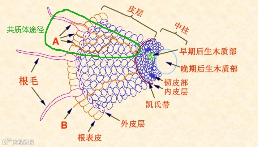 简单来说,质外体途径是在细胞外的空间转移运输,而共质体途径则是穿过细胞,从一个细胞的原生质转移到另一个细胞的原生质。