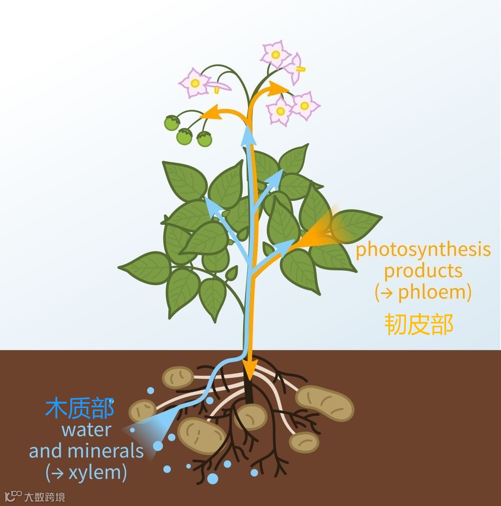 韧皮部运输是在活细胞内进行的,而且具有两个方向运输的功能。一般来说韧皮部运输养分以下行为主。(*木质部部分的细胞是死细胞,而韧皮部部分的细胞是活细胞。)