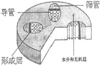 韧皮部汁液中干物质和有机化合物含量远高于木质部。钙和硼在韧皮部汁液中远小于木质部,其它矿质元素都高于木质部。所以木质部主要运输水分和无机盐,而韧皮部主要运输有机物质。