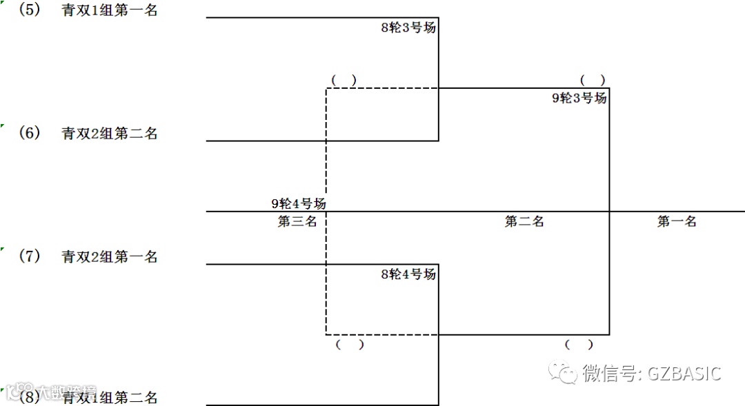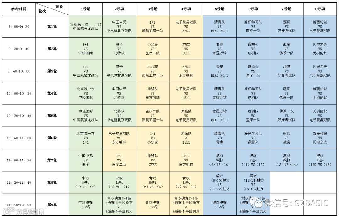 4. 参赛者必须按照已编定的比赛时间和场序,到指定的场地参加比赛,除第一场按编定的时间外,之后的比赛将按上一场比赛结束后时间算起,迟到10分钟则视为弃权。