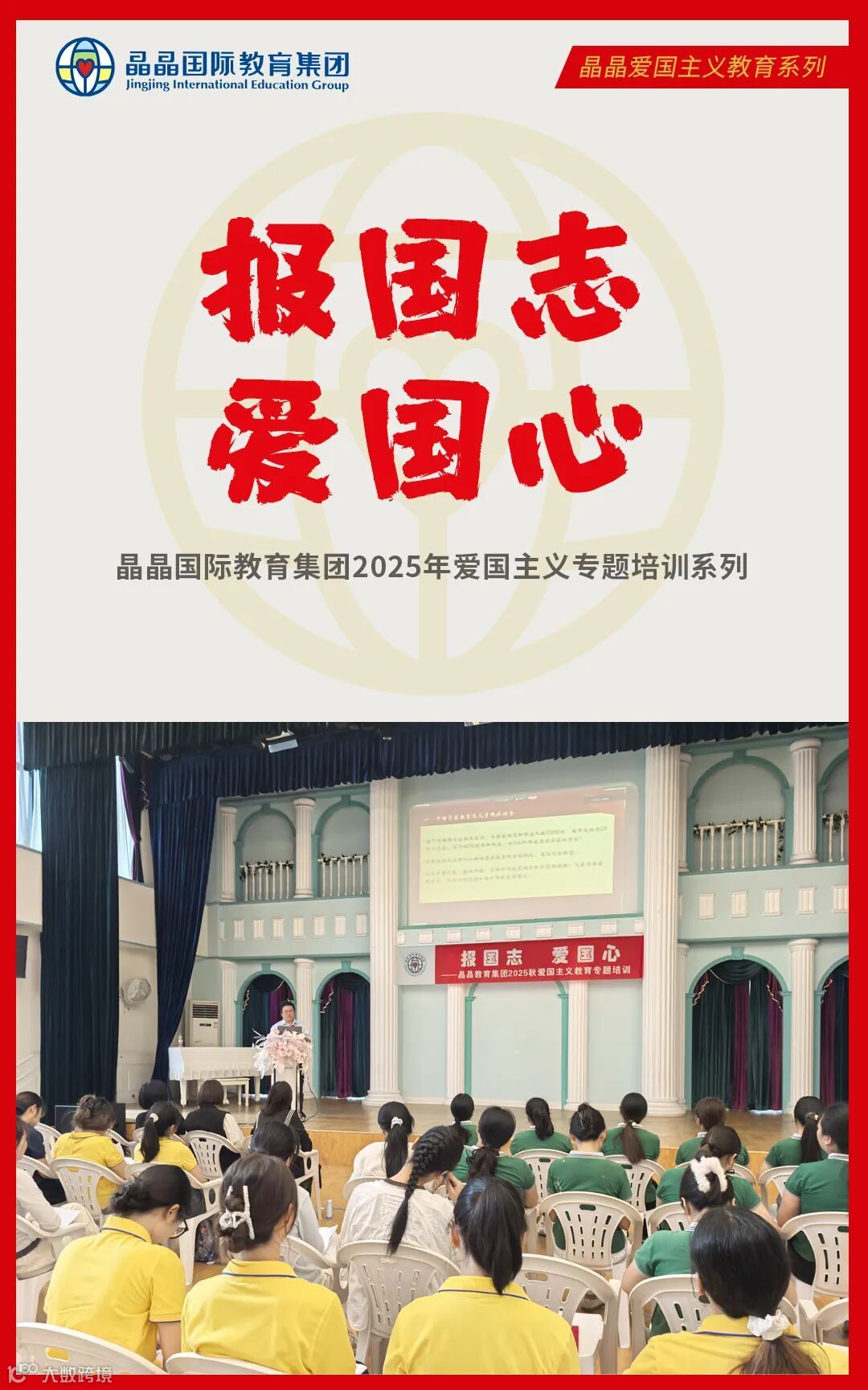 为庆祝中华人民共和国成立76周年,积极响应国家《爱国主义教育法》的号召,深植家国情怀于教育根基,9月26日中午,晶晶国际教育集团举办了一场高规格、深内涵的爱国主义专题培训。