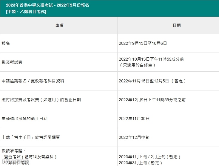 考评局是不接受未完成网上报名程序或没有缴妥考试费在申请亦不接受表格形式申请。