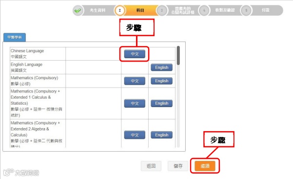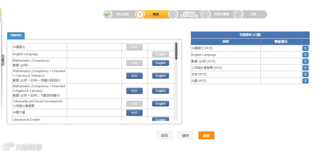 重复以上步骤直至输入所有报考科目,按【储存】以保存你的选择。