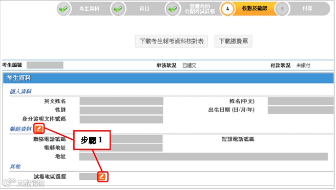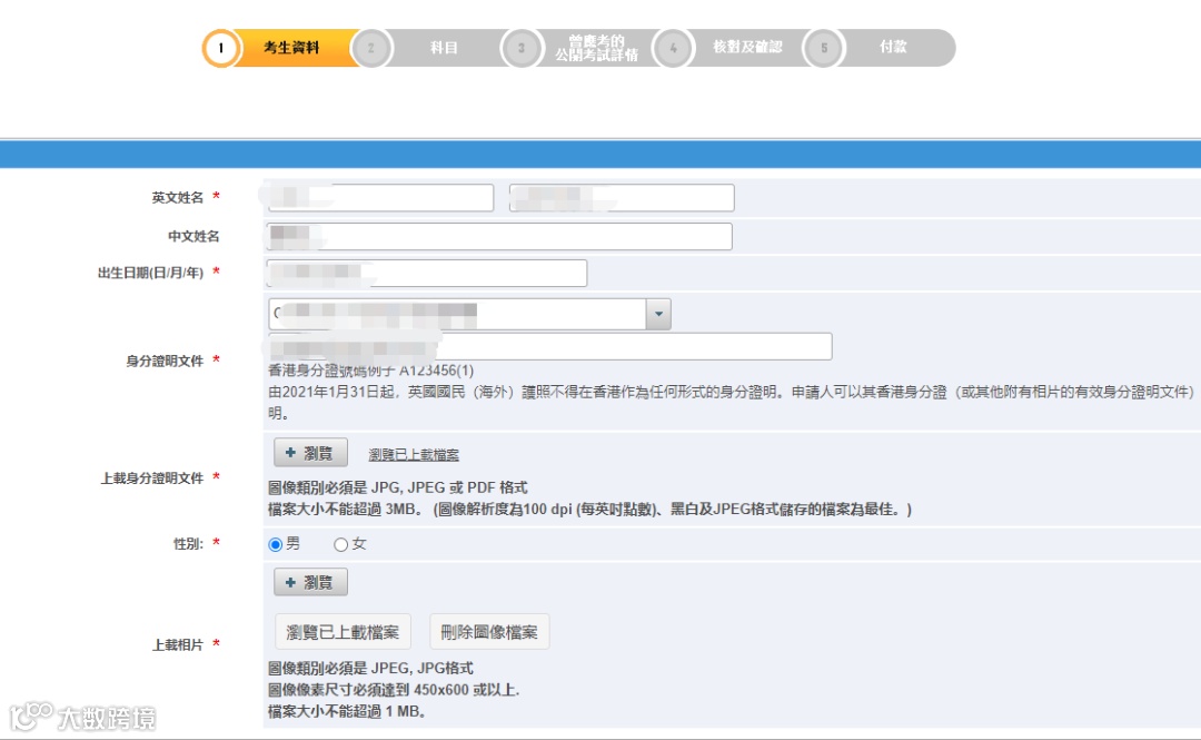 ③ 输入考生资料、联络资料及其他资料。注有「*」号的资料栏为必须输入。
