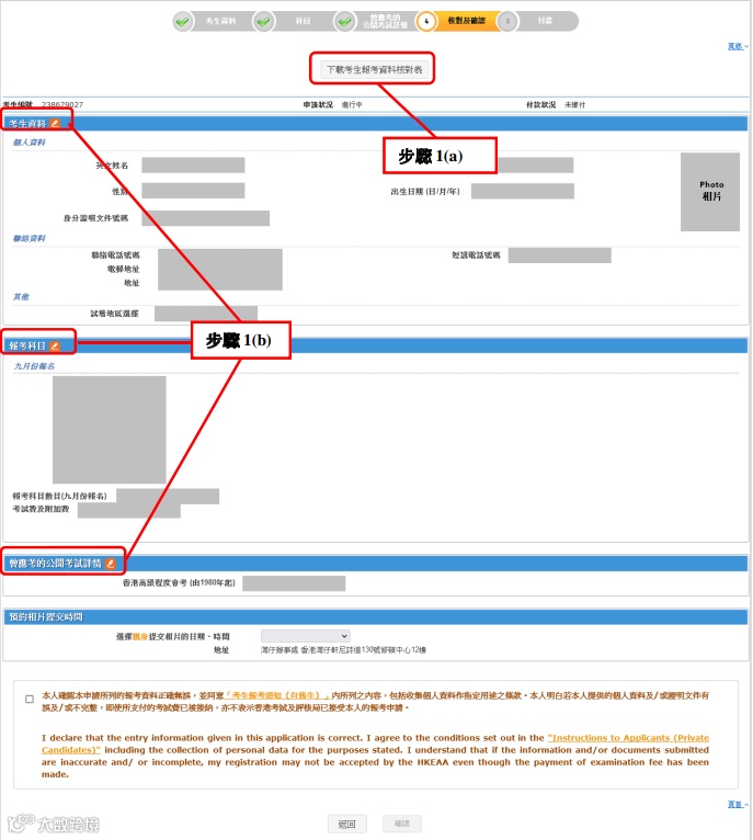 注意:报名申请一经确认并提交到考评局,就不能修改。建议大家多认真核对几遍信息,确认无误以后再提交。