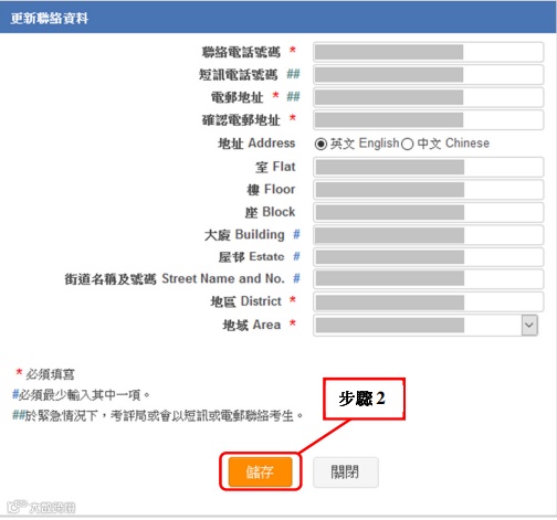你可登入报名系统,然后于「确认」版面按更新联络资料或试场地区选择自己适合的考场。