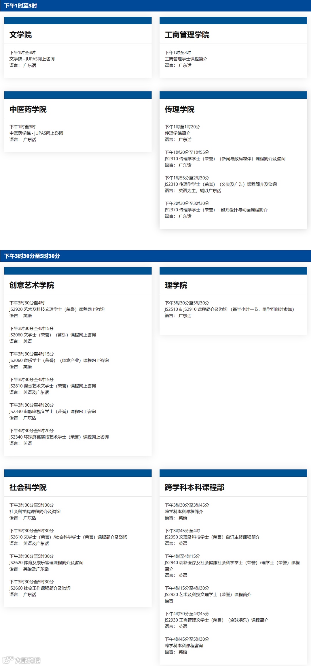 浸大教授及课程主任将分享最新课程资料、入学要求及面试贴士。 分享环节结束后,浸大各学院将举办咨询摊位,为参加者提供一对一的咨询。