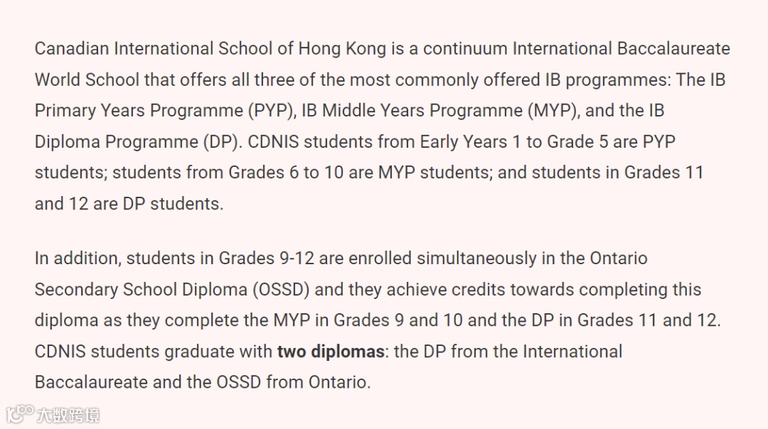 作为一所IB世界名校,香港加拿大国际学校为学生提供一条龙式的教育,从幼儿园到高中,提供IB文凭课程。
