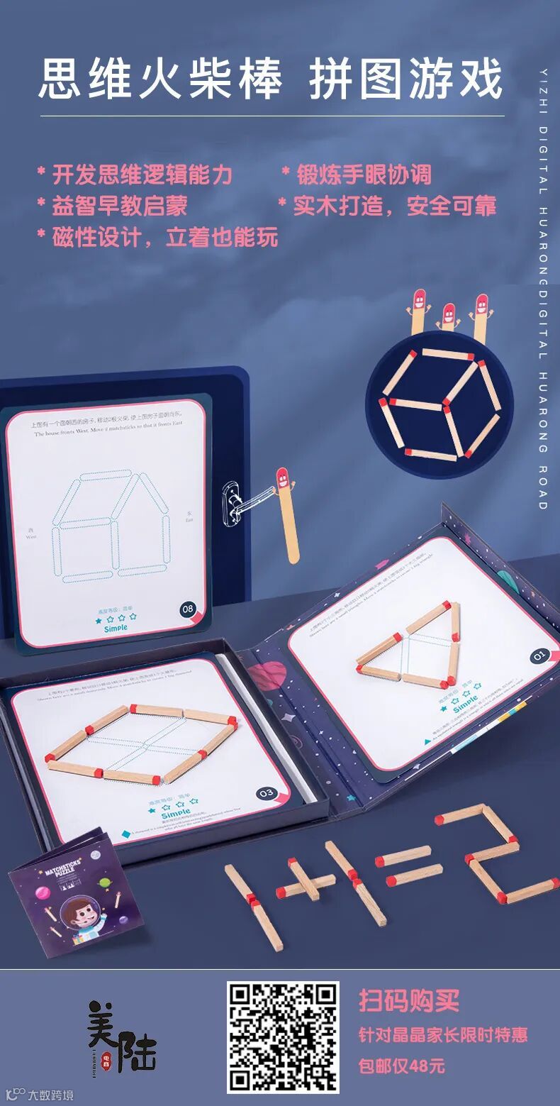 * 亲爱的爸爸妈妈们,为了帮助孩子开发思维能力,小晶老师跟大家推荐一款思维开发玩具:思维火柴棒拼图游戏玩具。具有"锻炼手眼协调、开发思维能力、益智"三大价值,非常适合3-6岁的晶晶孩子。