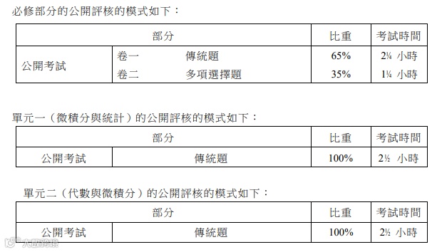 1.对课程及评估指引中微积分与统计学概念、原理及方法的理解;及