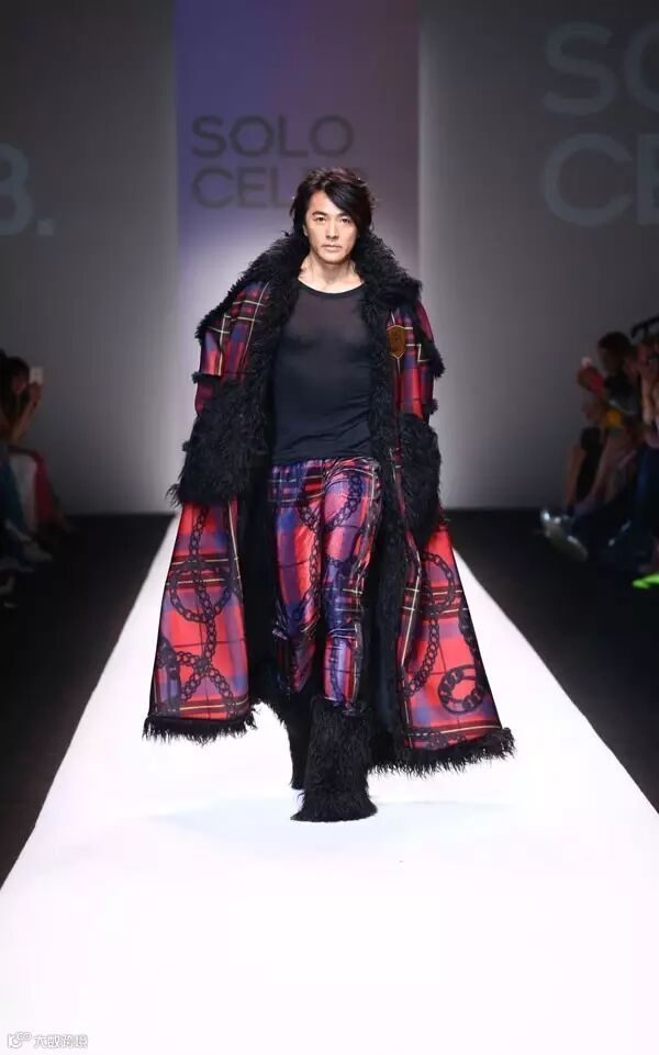 郑伊健,这一身套路把陈浩南做大哥逼格完全逼露出肌肉,这紧身的透视装,一双杀气的眼神,让伊健首次的T台Show上演了古惑仔风范。