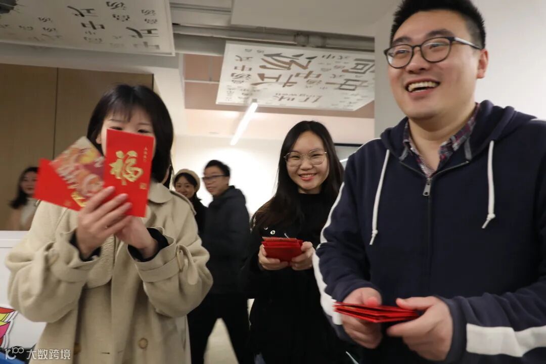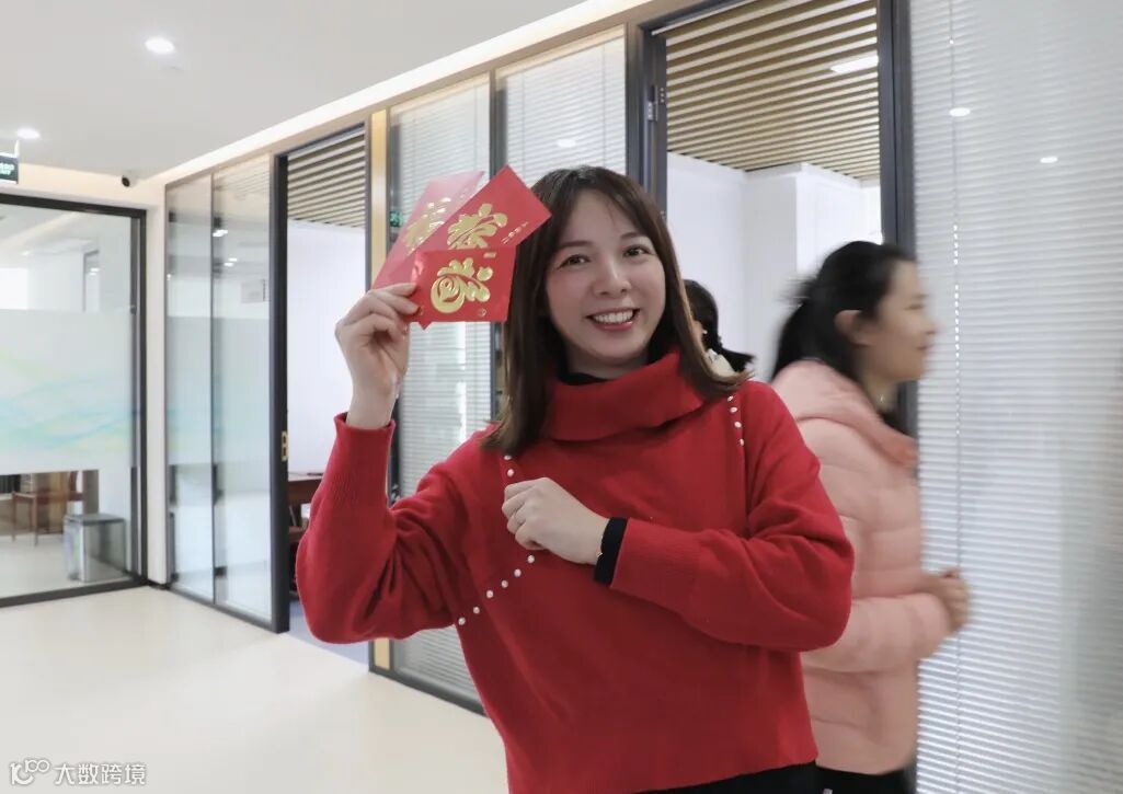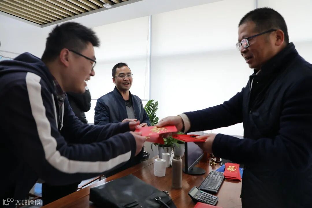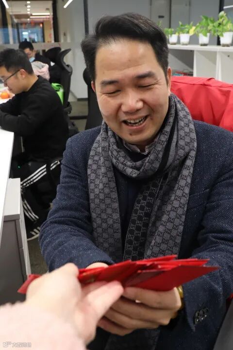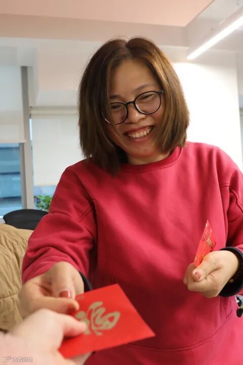 我们的蓝工、郑工、潘工亲手将一份份饱含着祝福和期望的好运利是传递到每一位伙伴手中。