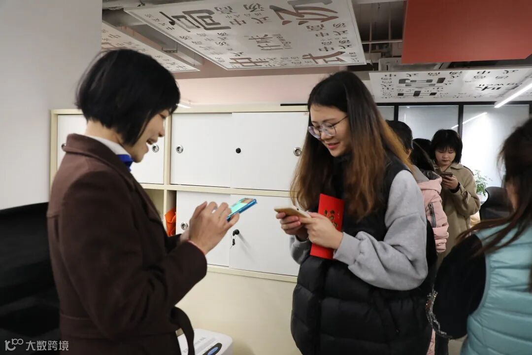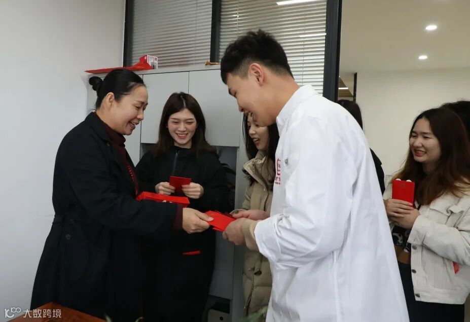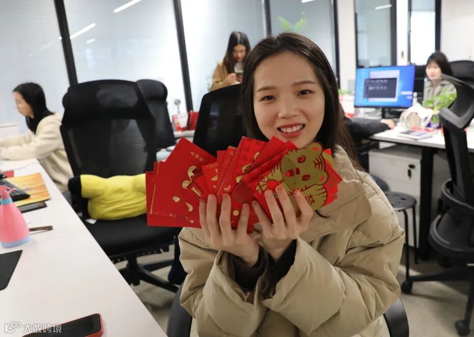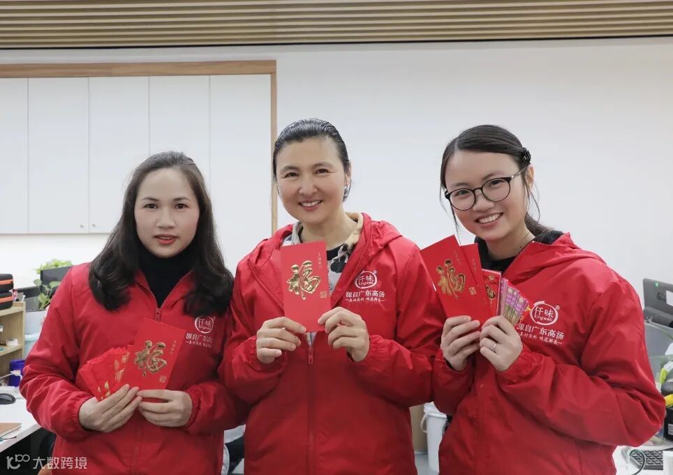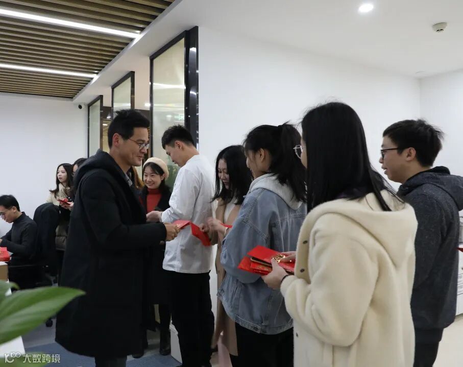 我们的蓝工、郑工、潘工亲手将一份份饱含着祝福和期望的好运利是传递到每一位伙伴手中。