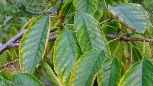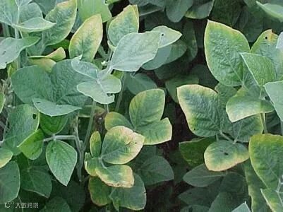 双子叶植物叶脉间先失绿,沿着叶缘开始出现黄化或者有褐色的斑点或条纹,并逐渐向叶脉蔓延,最后坏死。而单子叶植物叶尖先黄化,随后逐渐坏死。