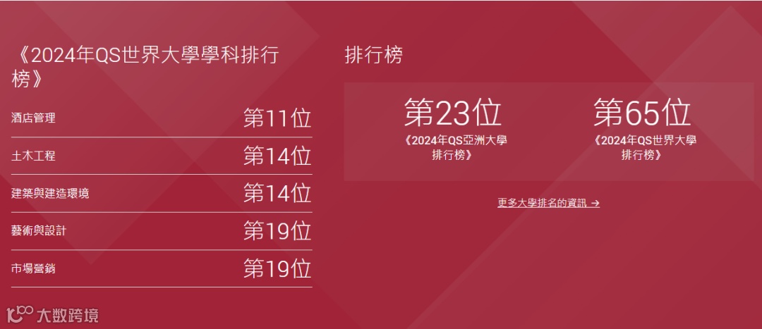在学术方面,理大在多个领域取得了卓越的成就。在QS 2024年度世界大学学科排名榜上,理大有五个学科位列全球前20位,包括酒店管理、土木工程、建筑与建造环境、艺术与设计以及市场营销。其中,市场营销学科首次进入全球前20位,显示了其强大的学科实力和发展势头。此外,理大还有三个学科位列全球前50位,包括护理学、数据科学与人工智能以及环境科学。