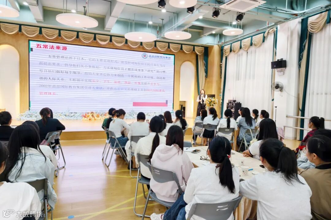 促进精细化管理,持续提升教育品质。晶晶集团深圳市福田区锦林幼儿园仲园长带来精彩的《5S标准化管理》分享。晶晶5S标准化管理体系,从整理、整顿、清扫、清洁、素养五个环节,结合幼儿园日常场景拆解实操要点,现场热烈问答、讨论,新员工积极交流心得、分享疑问,在思维的碰撞中,深刻理解标准化管理对幼儿成长的重要意义。