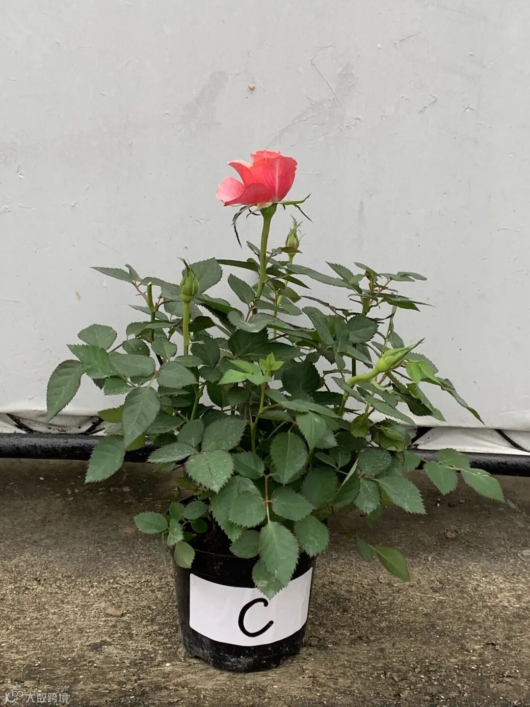 第六天,这周广东遇上寒潮天气,低温环境不适合玫瑰盆栽开花,植株生长速度缓慢。可以看到三组都出现花瓣卷边现象,但花博士组的花瓣卷边现象是比较轻微的,且花朵开放程度提高了一些。