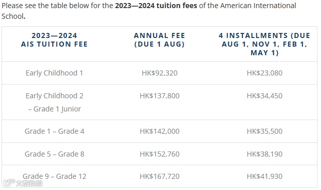 与香港很多国际学校相比,香港美国国际学校的学费性价比蛮高,为9.232-17万港币/年,分为4期付款。同时香港美国国际学校属于香港少有不收债券的学校!这也大大减轻了家长们的负担。